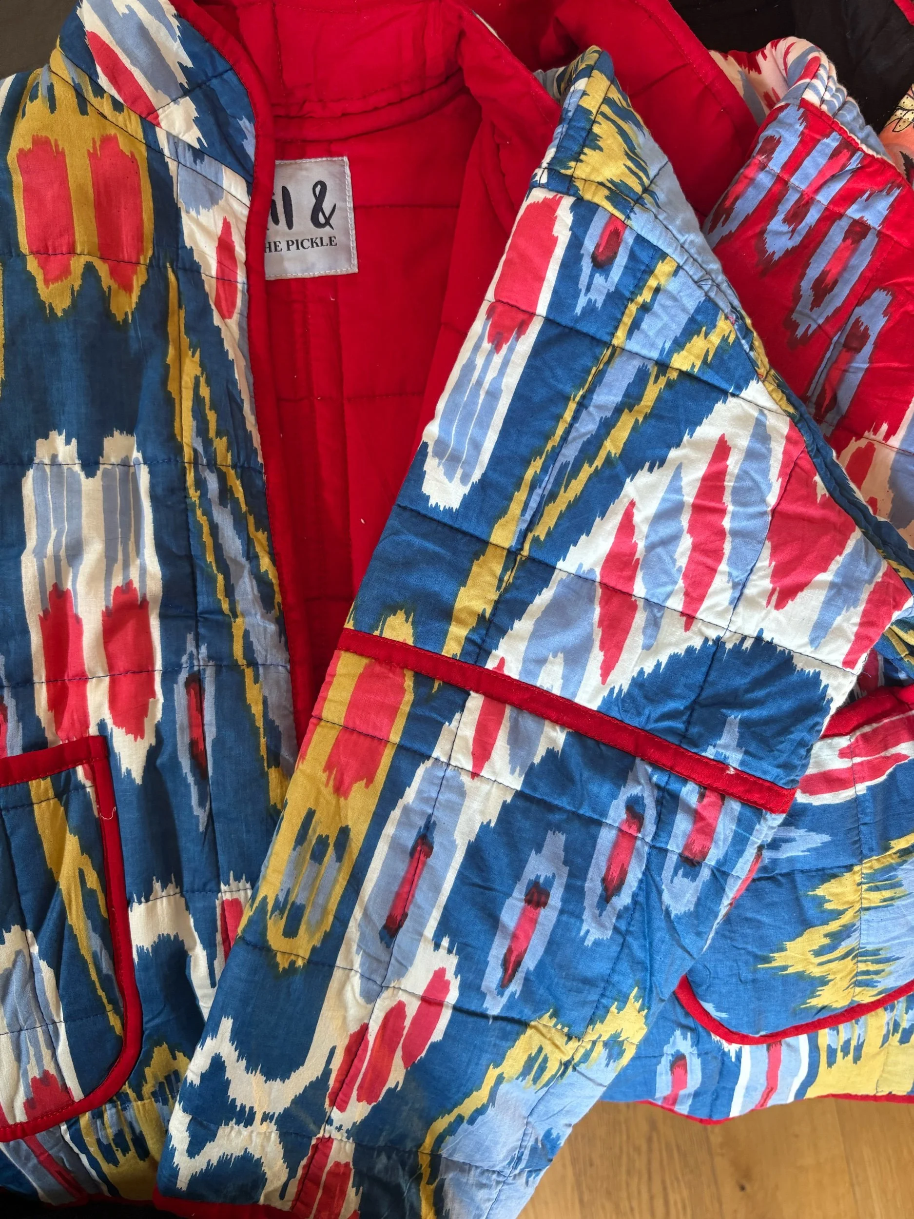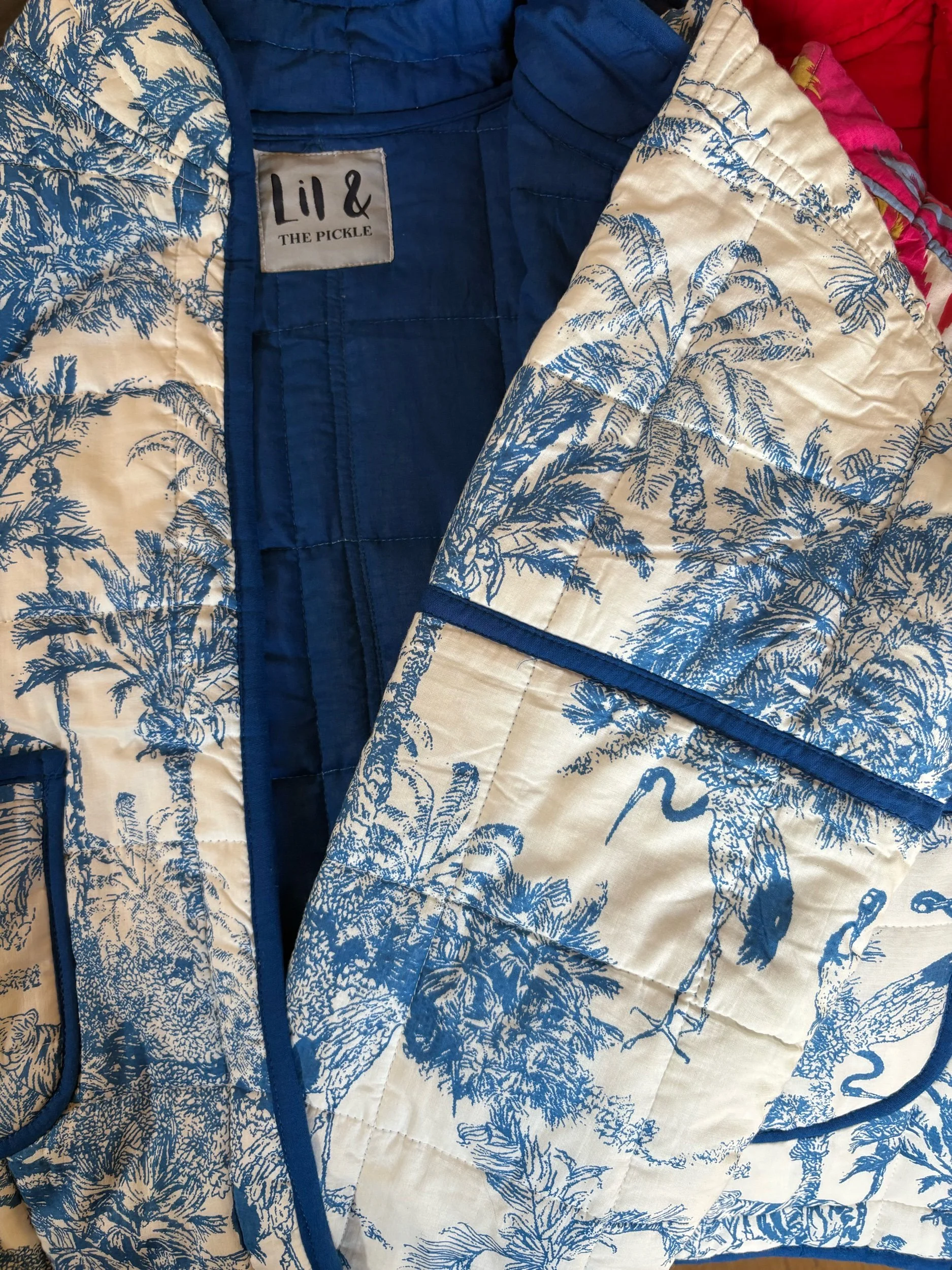 The quilted Pickle is your boldest cuddle in jacket form. Radiating unapologetic comfort with its chunky quilted texture and firecracker blue hue, it’s designed for muddy escapades, glitter-filled twirls, and spontaneous snuggle sessions.