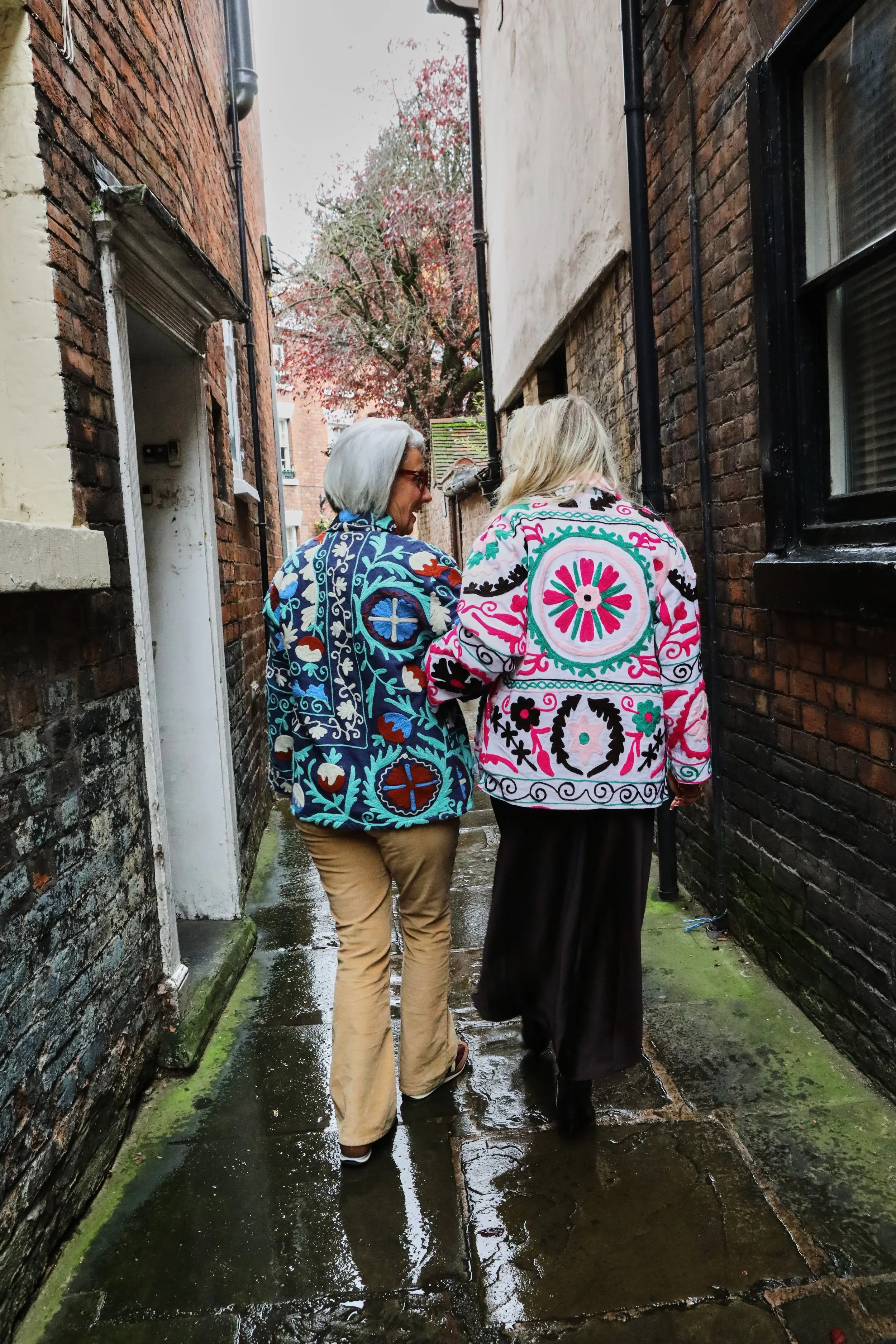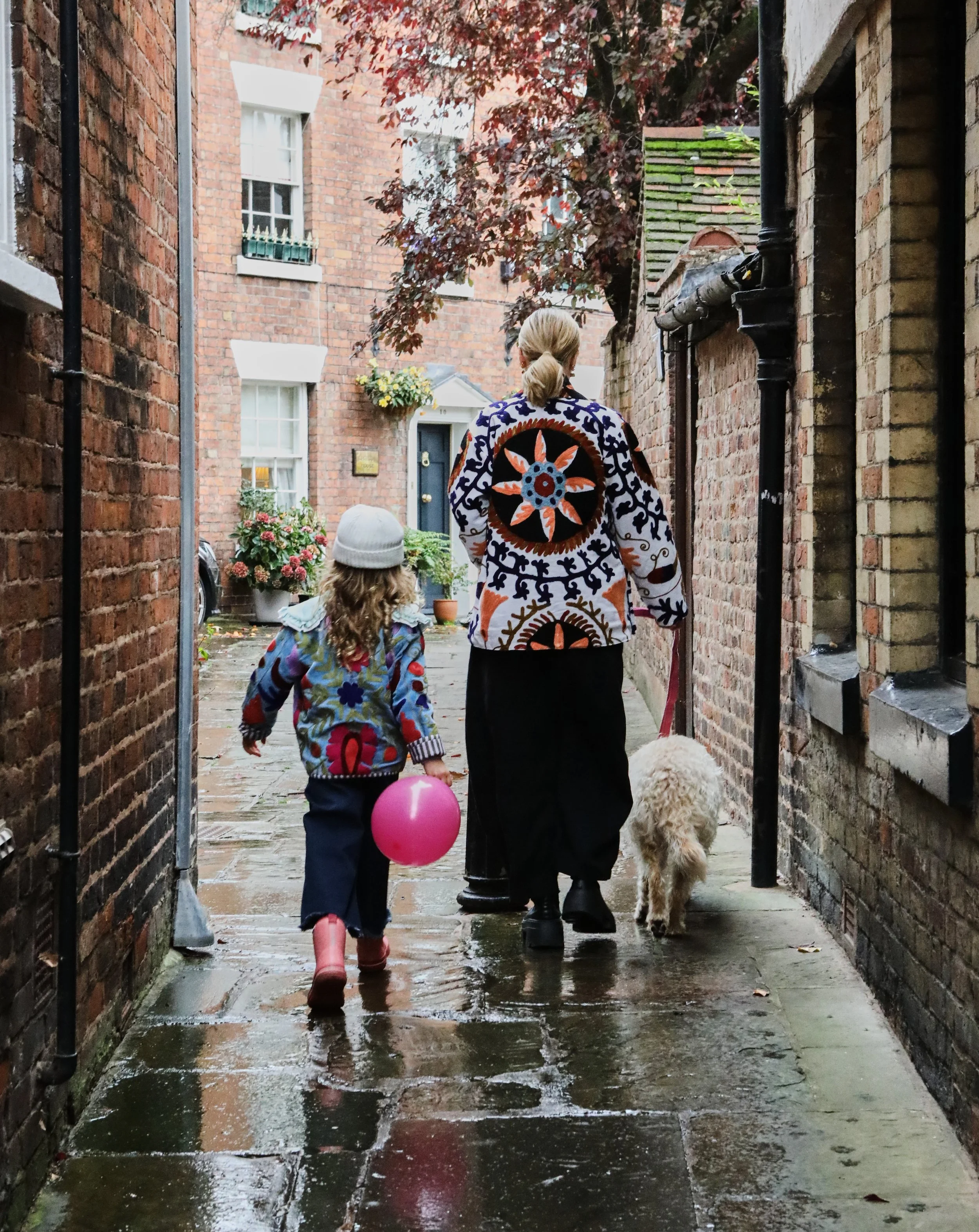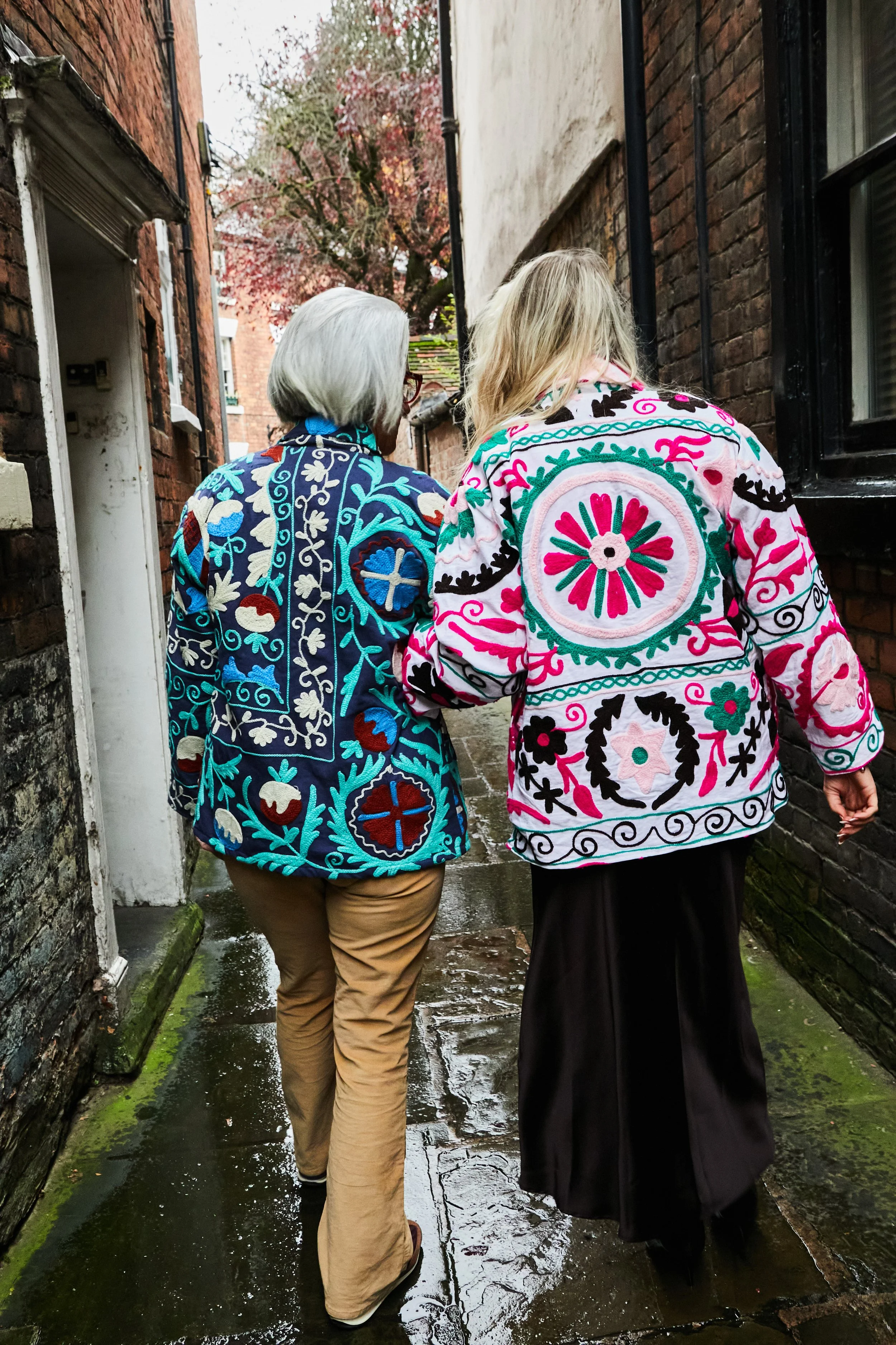 Each piece showcases a vibrant, hand embroidered suzani pattern, celebrating bold colour and artisan detail. Discreet inside pockets add practicality without compromising the silhouette, making Nahla as functional as it is beautiful.